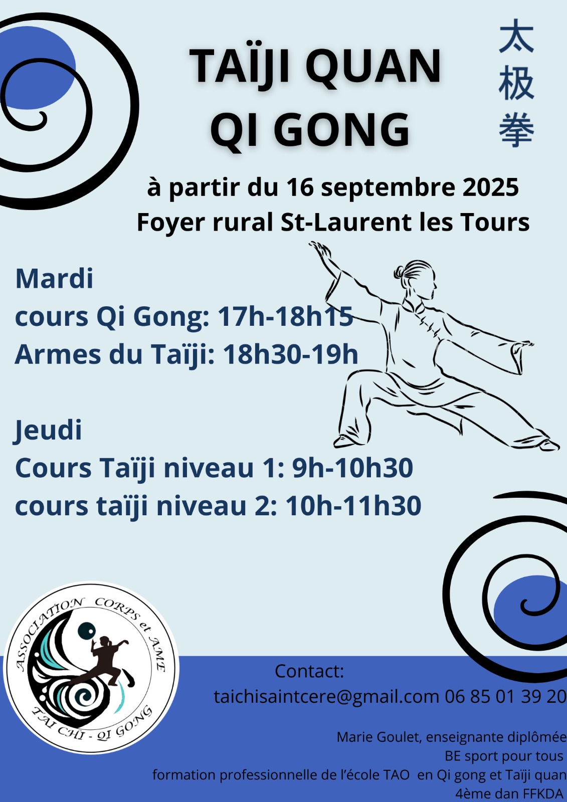 Taiji Quan et Qi Gong les mardi de 17h à 20h et jeudi de 9h30 à 11h