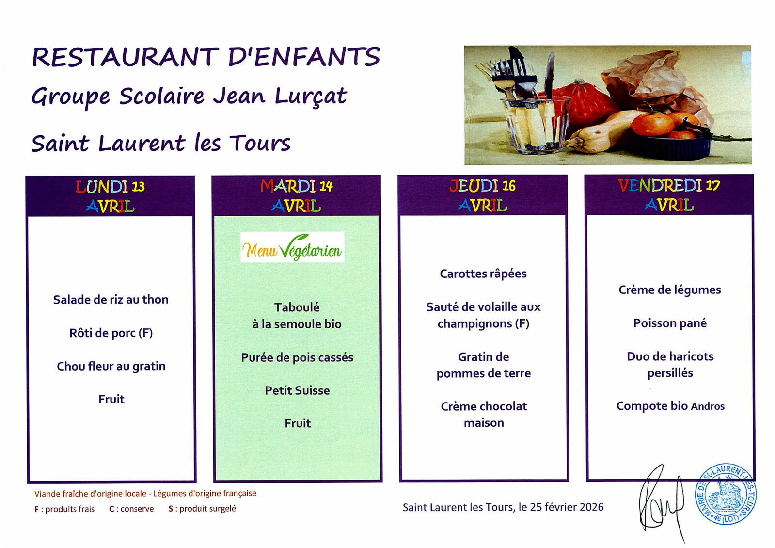 Menu Cantine semaine 16